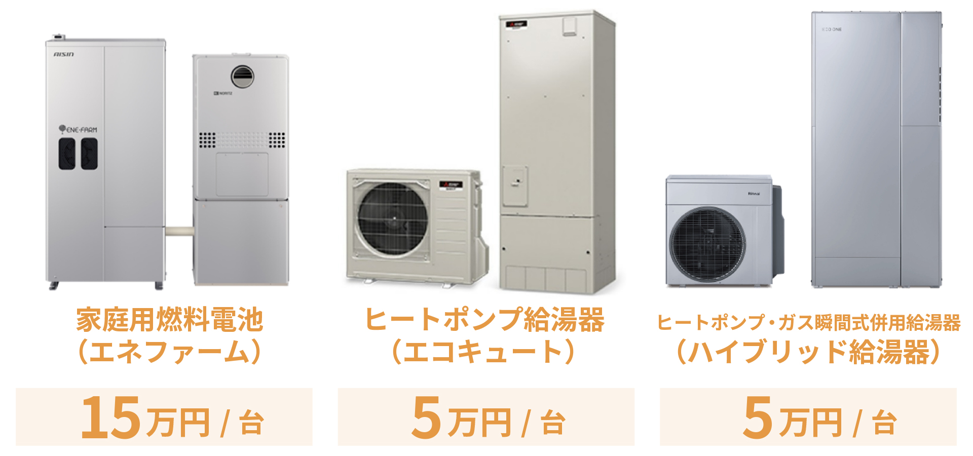 導入する高効率給湯器に応じて定額を補助が受けられます。