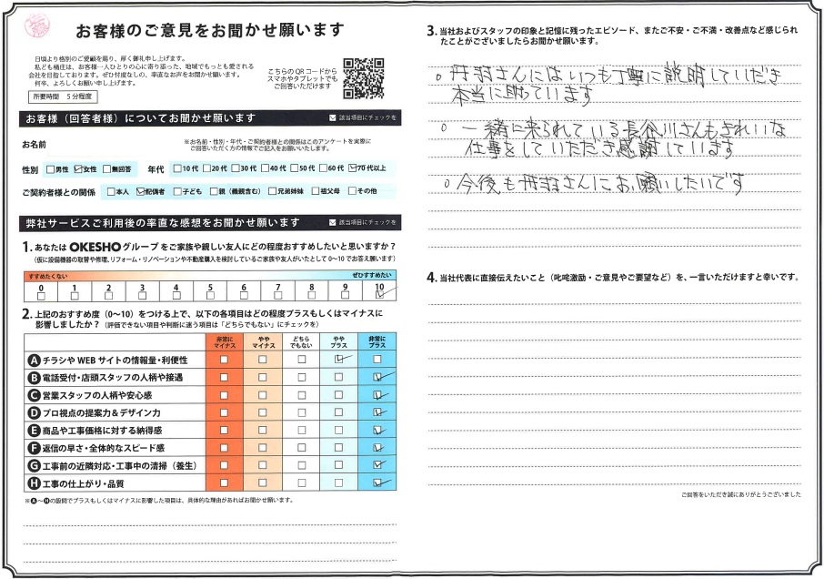 当社およびスタッフの印象と記憶に残ったエピソード、またご不安・ご不満・改善点など感じられたことがございましたらお聞かせ願います。