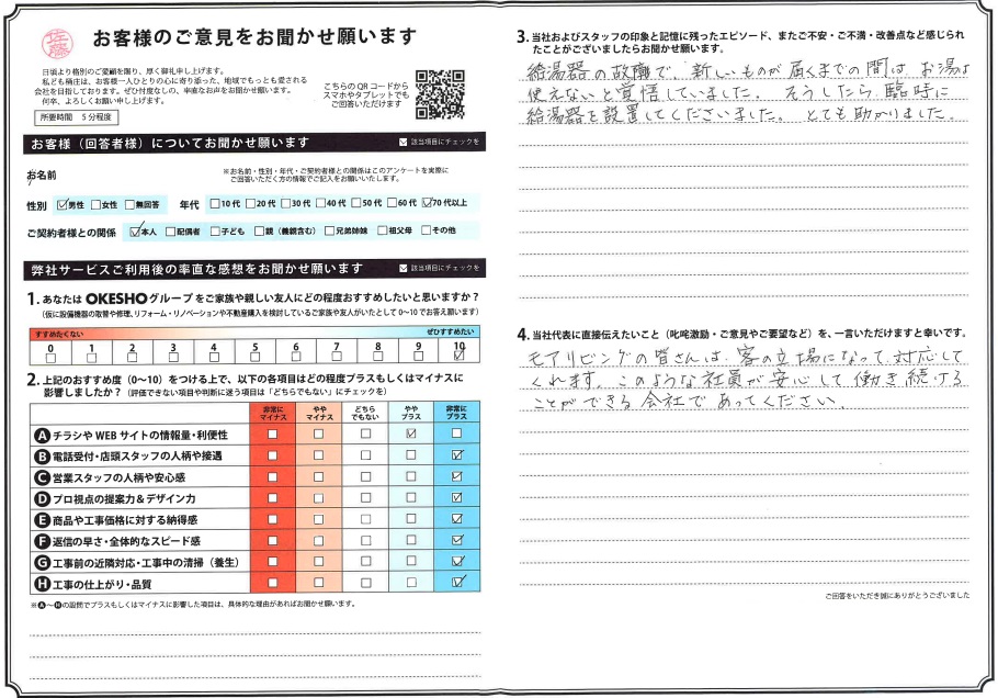 当社およびスタッフの印象と記憶に残ったエピソード、またご不安・ご不満・改善点など感じられたことがございましたらお聞かせ願います。