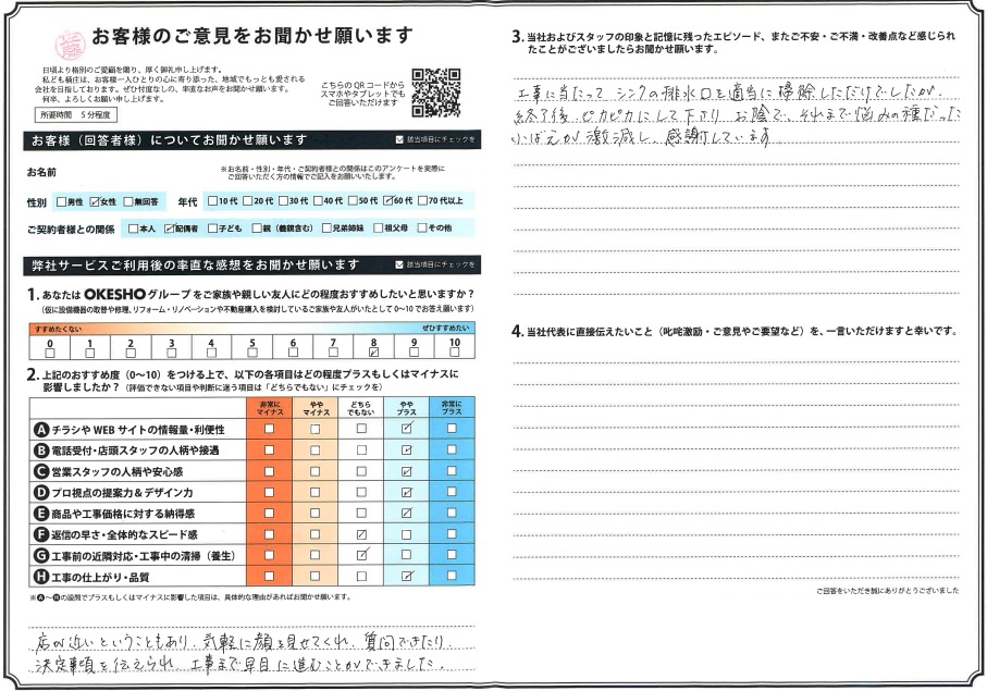 当社およびスタッフの印象と記憶に残ったエピソード、またご不安・ご不満・改善点など感じられたことがございましたらお聞かせ願います。