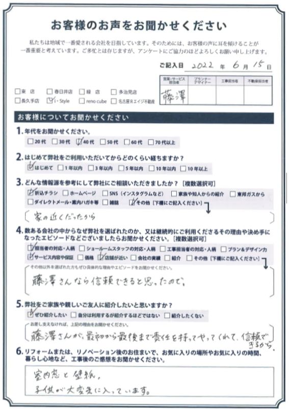 藤澤さんが、最初から最後まで責任を持ってやってくれて信頼できるから。