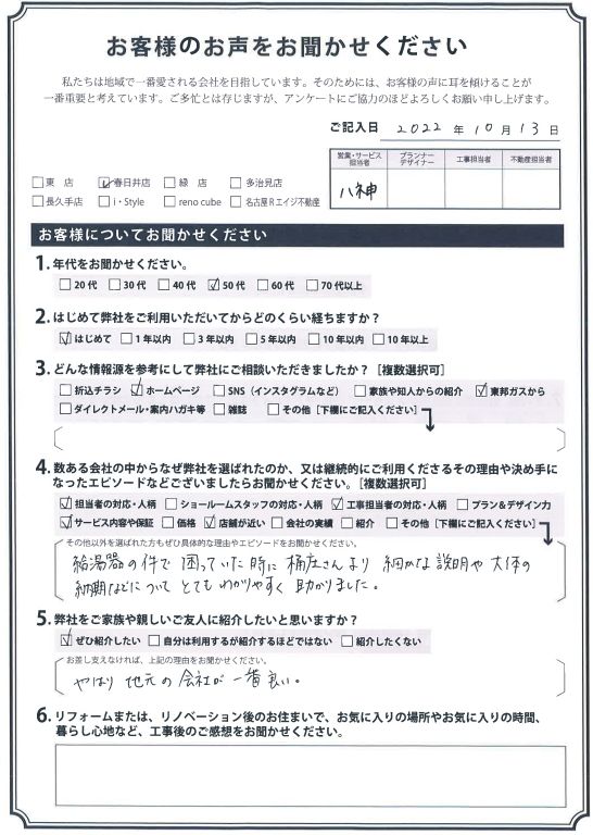給湯器の件で困っていた時に 桶庄さんより細かな説明や大体の納期などについて とてもわかりやすく助かりました。