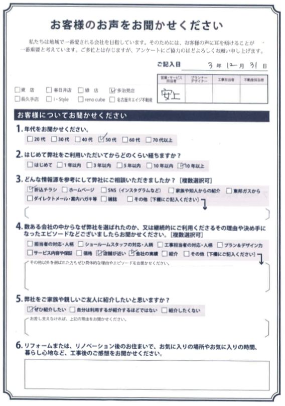 お客様アンケート一覧