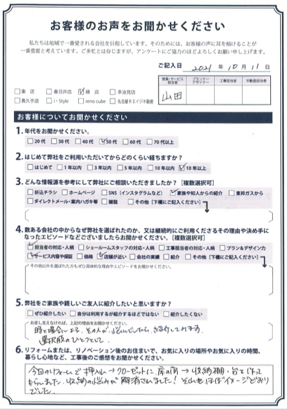 弊社をご家族や親しいご友人に紹介したいと思いますか?
