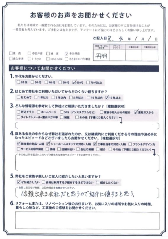 弊社をご家族や親しいご友人に紹介したいと思いますか?
