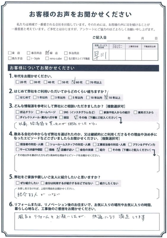 弊社をご家族や親しいご友人に紹介したいと思いますか?