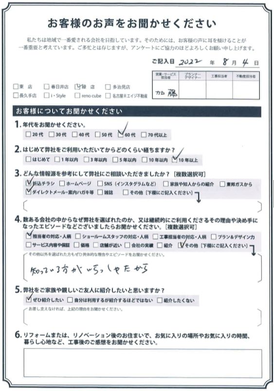 数ある会社の中から なぜ弊社を選ばれたのか、又は継続的にご利用くださるその理由や決め手になったエピソードなどございましたらお聞かせください。