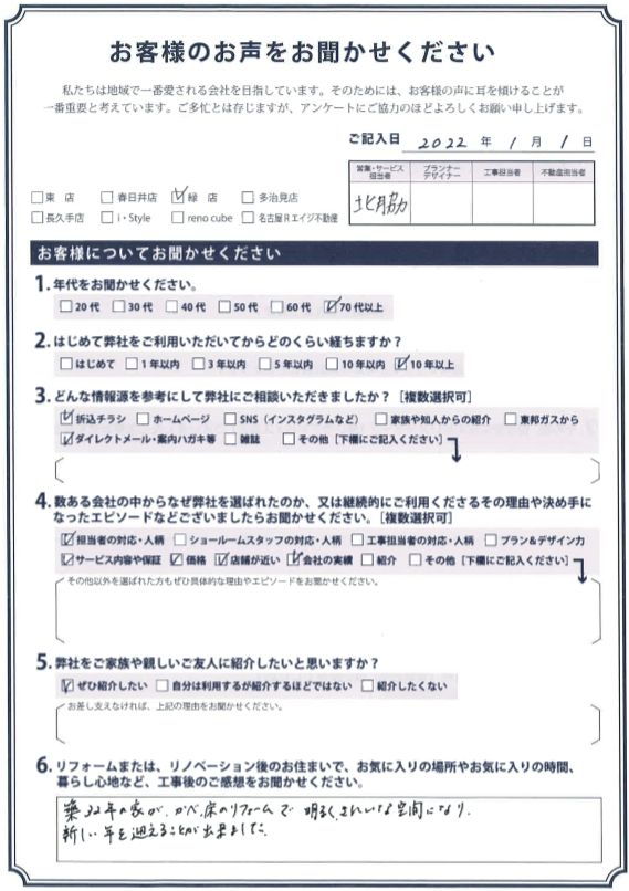 築32年の家が、かべ・床のリフォームで 明るく きれいな空間になり、新しい年を迎えることが出来ました。