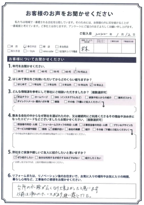 リフォームまたは、リノベーション後のお住まいで、お気に入りの場所やお気に入りの時間、暮らし心地など、工事後のご感想をお聞かせください。