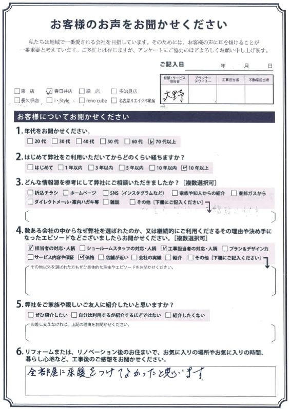 リフォームまたは、リノベーション後のお住まいで、お気に入りの場所やお気に入りの時間、暮らし心地など、工事後のご感想をお聞かせください。