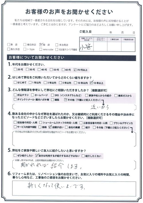 リフォームまたは、リノベーション後のお住まいで、お気に入りの場所やお気に入りの時間、暮らし心地など、工事後のご感想をお聞かせください。