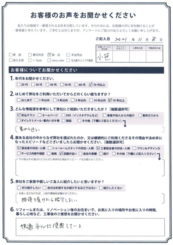 リフォームまたは、リノベーション後のお住まいで、お気に入りの場所やお気に入りの時間、暮らし心地など、工事後のご感想をお聞かせください。