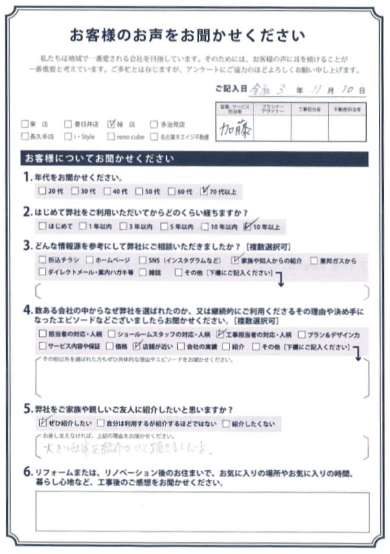 弊社をご家族や親しいご友人に紹介したいと思いますか?