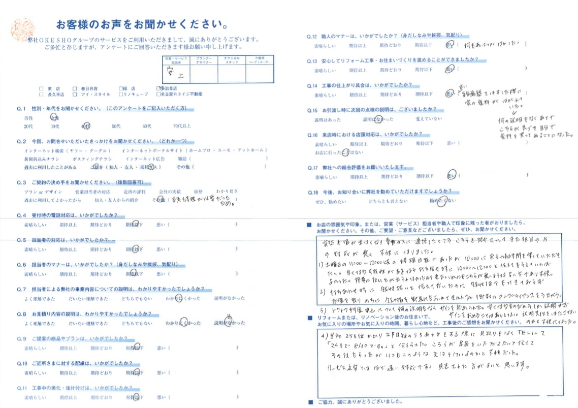お店の雰囲気や印象。または、営業(サービス)担当者や職人で印象に残った者がおりましたら、お聞かせください。その他、ご要望・ご意見などございましたら、ぜひ、お聞かせください。