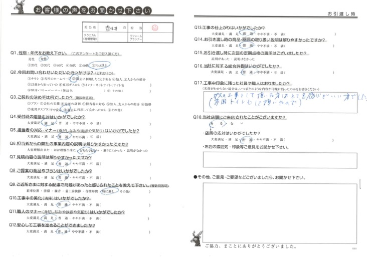 ガス工事をして頂いた方はとても感じがいい方でした。(前回 トイレもして頂いたので)