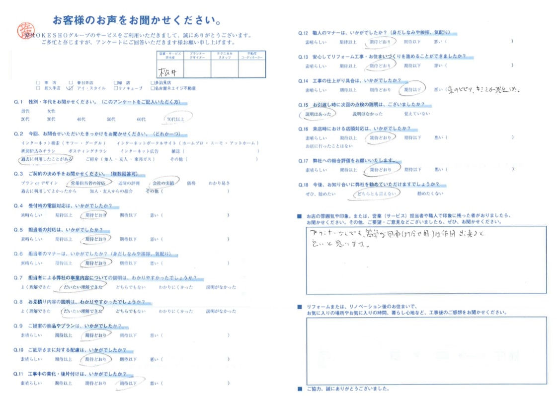 お客様アンケート一覧