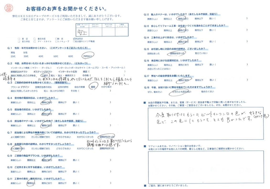 お店の雰囲気や印象。または、営業(サービス)担当者や職人で印象に残った者がおりましたら、お聞かせください。その他、ご要望・ご意見などございましたら、ぜひ、お聞かせください。