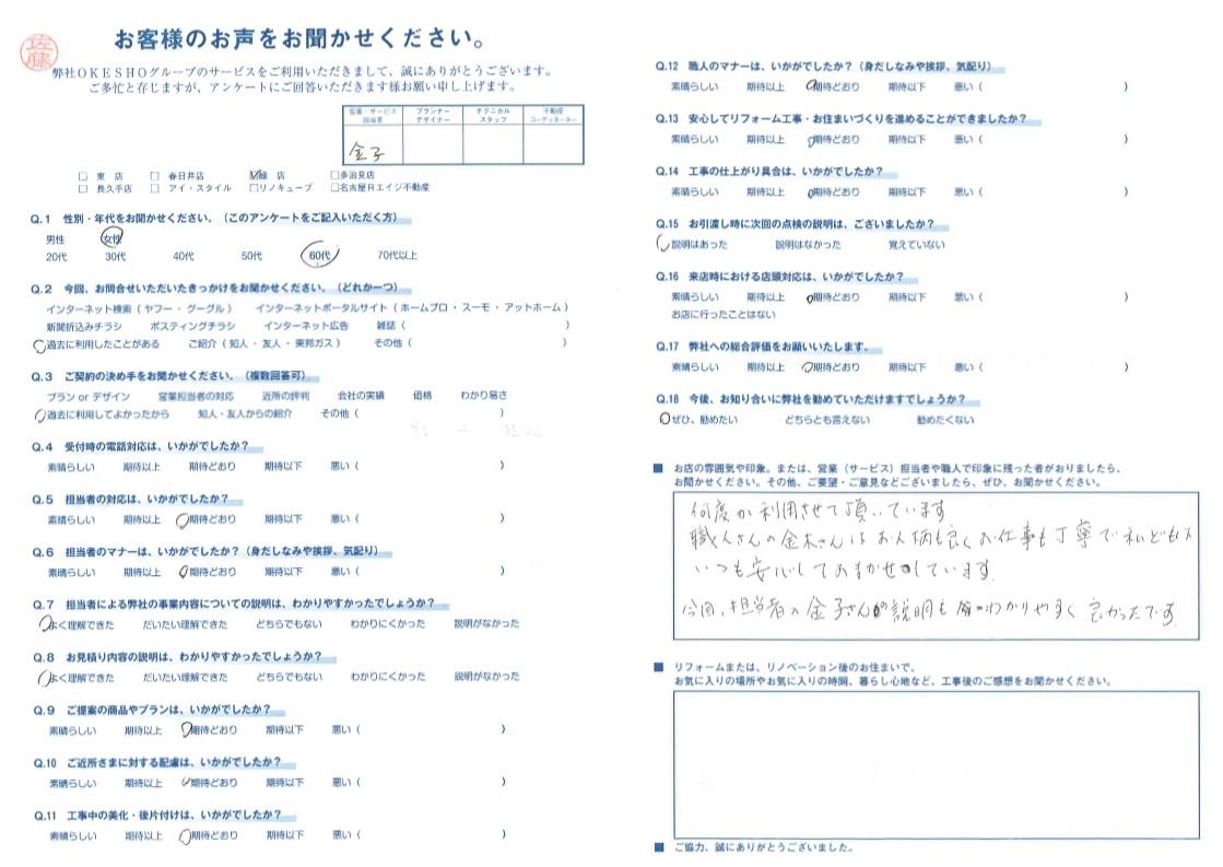 お店の雰囲気や印象。または、営業(サービス)担当者や職人で印象に残った者がおりましたら、お聞かせください。その他、ご要望・ご意見などございましたら、ぜひ、お聞かせください。