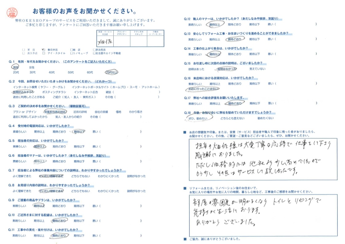 お店の雰囲気や印象。または、営業(サービス)担当者や職人で印象に残った者がおりましたら、お聞かせください。その他、ご要望・ご意見などございましたら、ぜひ、お聞かせください。
