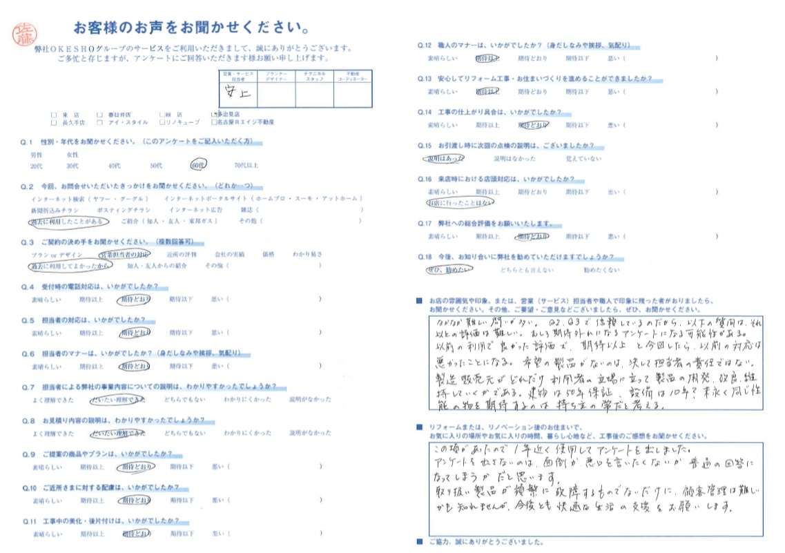 お店の雰囲気や印象。または、営業(サービス)担当者や職人で印象に残った者がおりましたら、お聞かせください。その他、ご要望・ご意見などございましたら、ぜひ、お聞かせください。