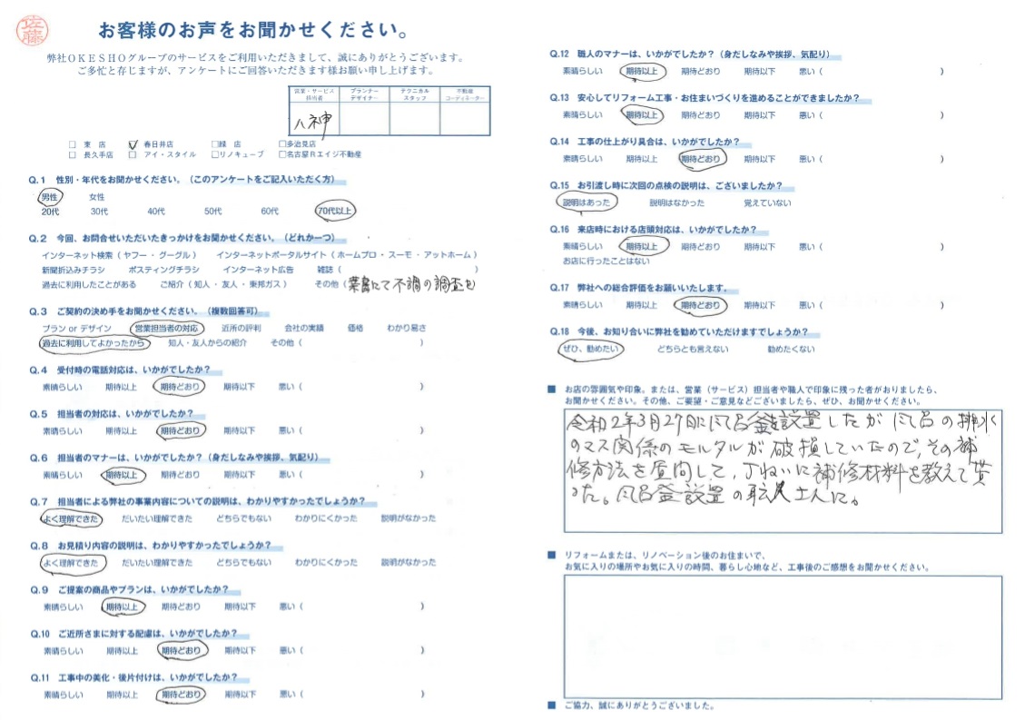 お店の雰囲気や印象。または、営業(サービス)担当者や職人で印象に残った者がおりましたら、お聞かせください。その他、ご要望・ご意見などございましたら、ぜひ、お聞かせください。