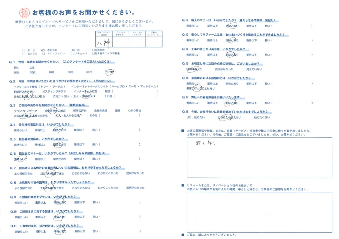 お客様アンケート一覧