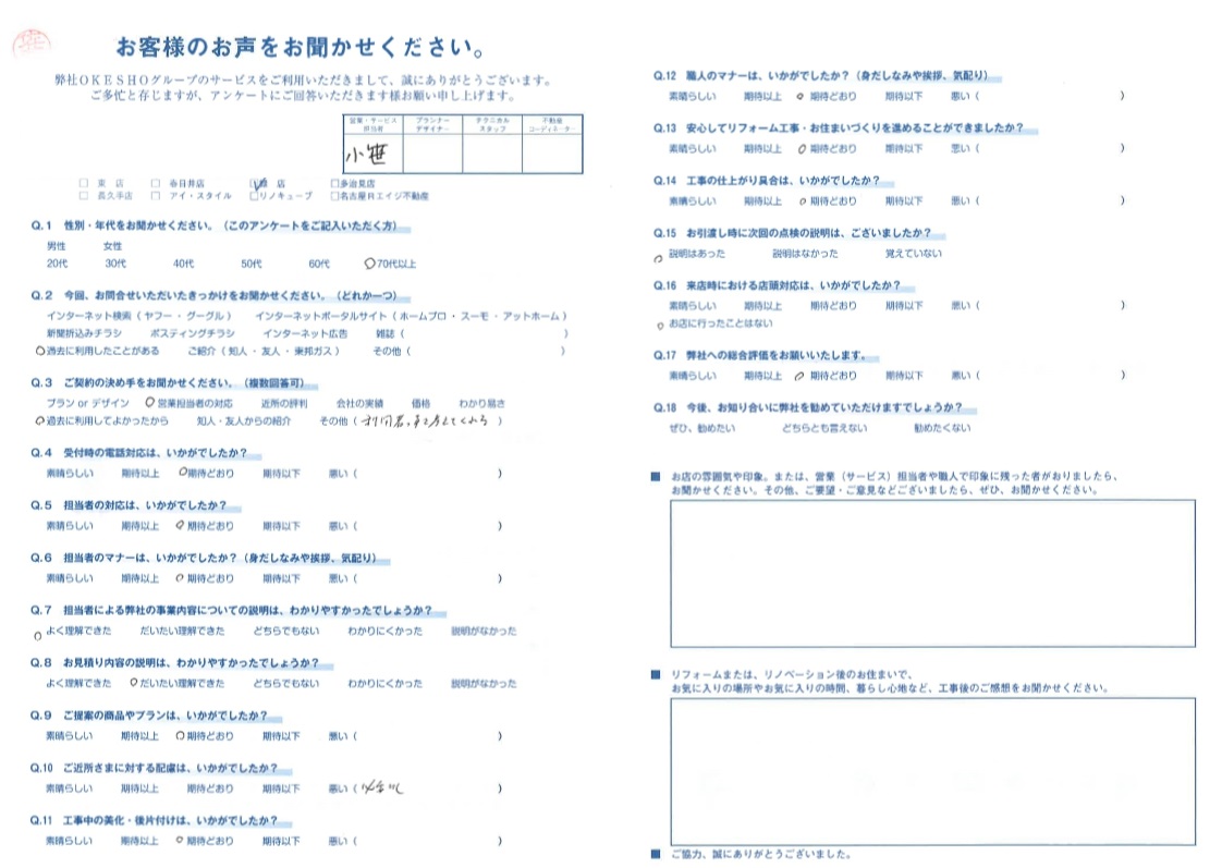 お客様アンケート一覧