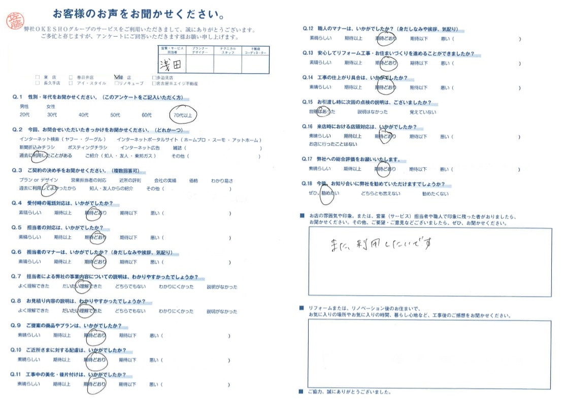 お客様アンケート一覧