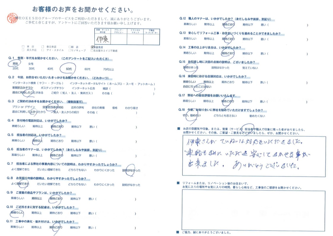 伊東さんが ていねいな対応していただきました。連絡もまめにいただき安心してまかせる事が出来ました。ありがとうございました。
