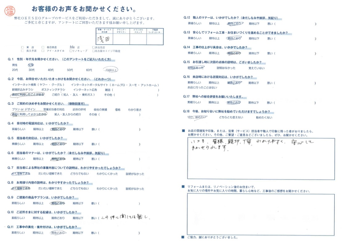 お客様アンケート一覧