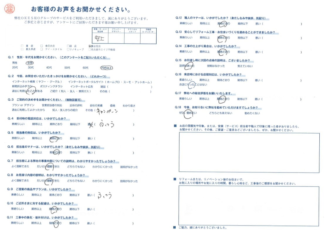 お客様アンケート一覧
