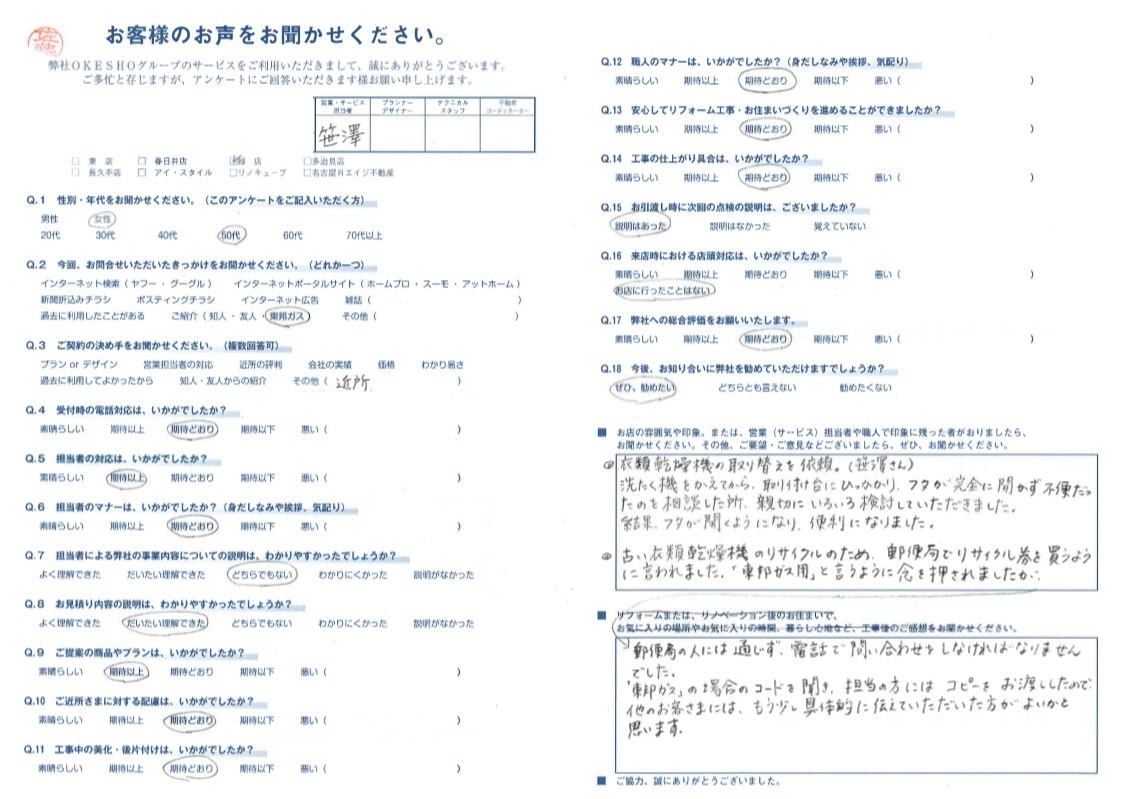 ◎衣類乾燥機の取り替えを依頼。(笹澤さん)