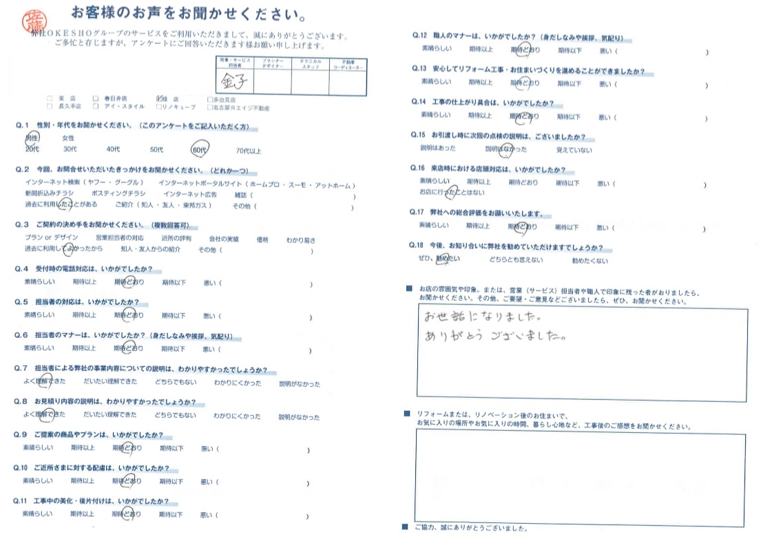 お客様アンケート一覧