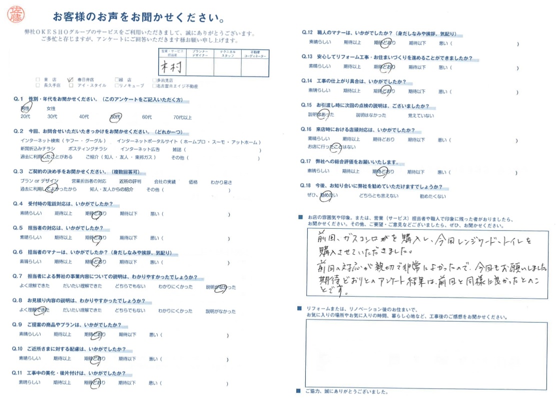 前回、ガスコンロを購入し、今回 レンジフード・トイレを購入させていただきました。