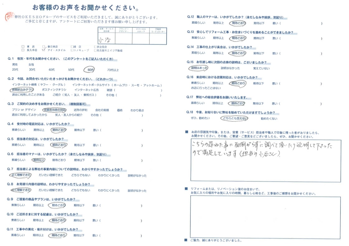 お店の雰囲気や印象。または、営業(サービス)担当者や職人で印象に残った者がおりましたら、お聞かせください。その他、ご要望・ご意見などございましたら、ぜひ、お聞かせください。