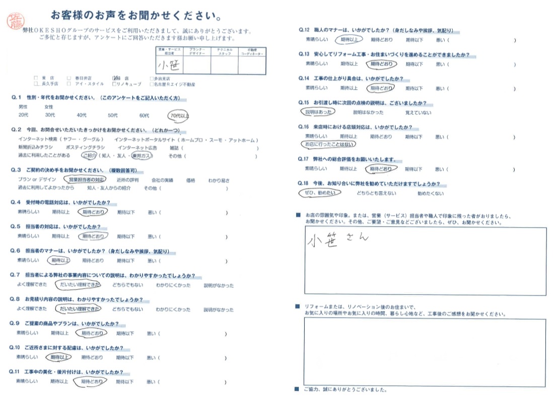 お客様アンケート一覧
