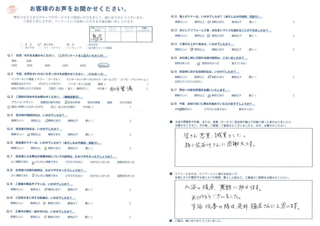 お店の雰囲気や印象。または、営業(サービス)担当者や職人で印象に残った者がおりましたら、お聞かせください。その他、ご要望・ご意見などございましたら、ぜひ、お聞かせください。