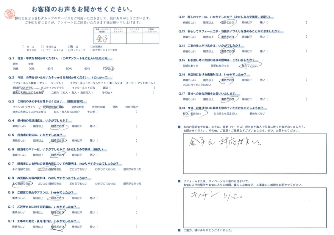 お店の雰囲気や印象。または、営業(サービス)担当者や職人で印象に残った者がおりましたら、お聞かせください。その他、ご要望・ご意見などございましたら、ぜひ、お聞かせください。