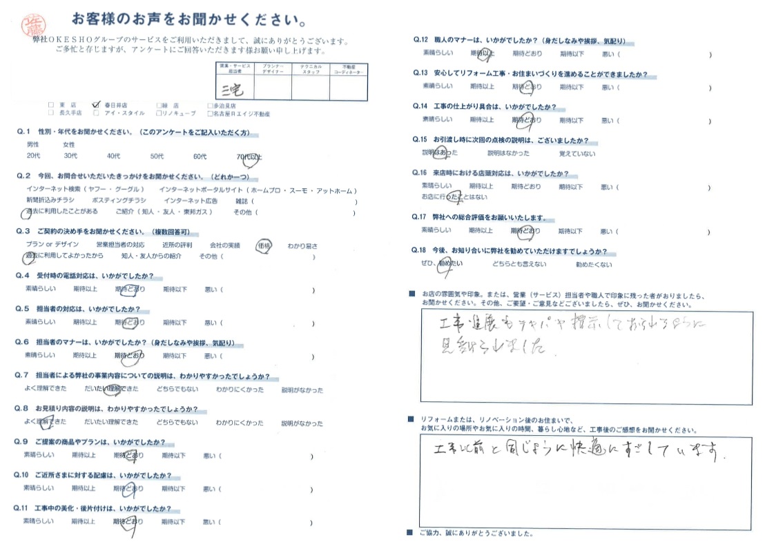 お店の雰囲気や印象。または、営業(サービス)担当者や職人で印象に残った者がおりましたら、お聞かせください。その他、ご要望・ご意見などございましたら、ぜひ、お聞かせください。
