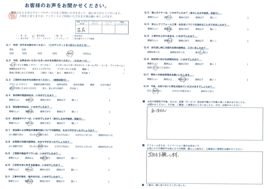お店の雰囲気や印象。または、営業(サービス)担当者や職人で印象に残った者がおりましたら、お聞かせください。その他、ご要望・ご意見などございましたら、ぜひ、お聞かせください。