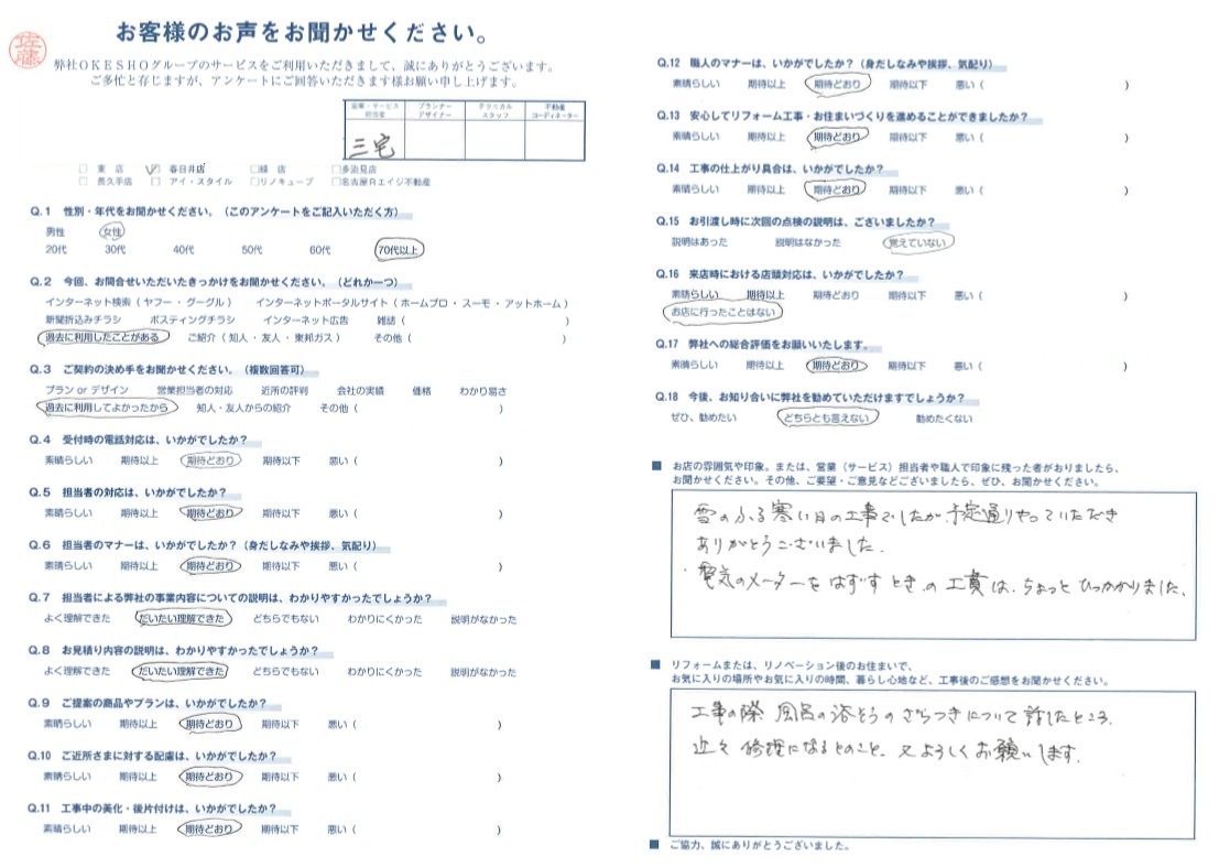 お店の雰囲気や印象。または、営業(サービス)担当者や職人で印象に残った者がおりましたら、お聞かせください。その他、ご要望・ご意見などございましたら、ぜひ、お聞かせください。