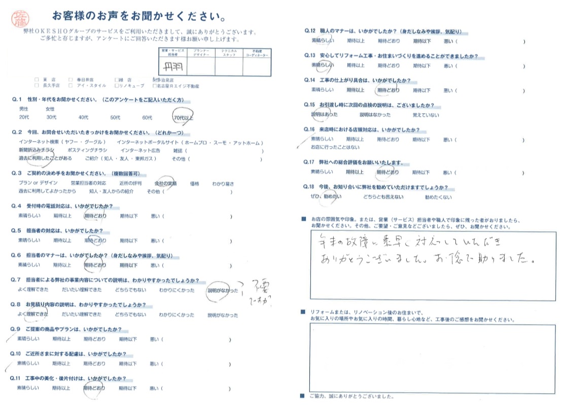 お店の雰囲気や印象。または、営業(サービス)担当者や職人で印象に残った者がおりましたら、お聞かせください。その他、ご要望・ご意見などございましたら、ぜひ、お聞かせください。