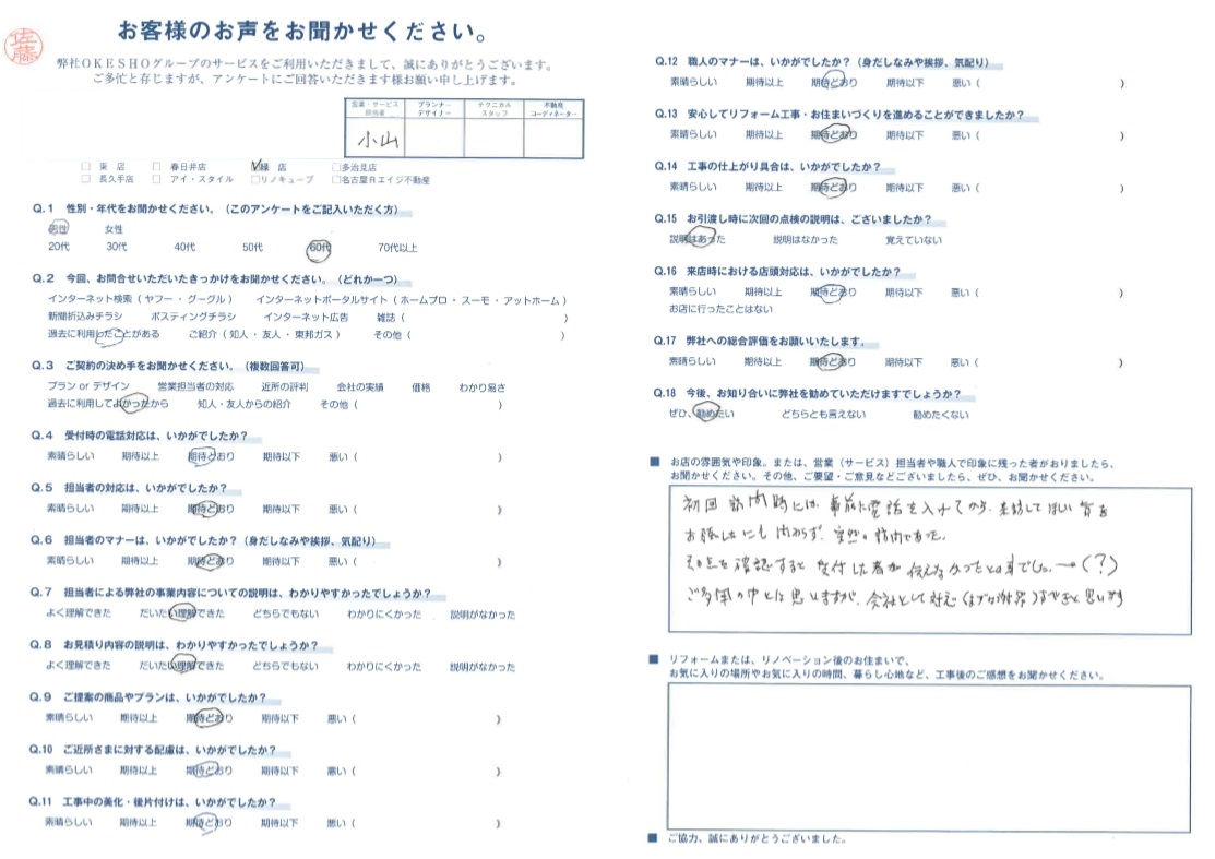 お店の雰囲気や印象。または、営業(サービス)担当者や職人で印象に残った者がおりましたら、お聞かせください。その他、ご要望・ご意見などございましたら、ぜひ、お聞かせください。