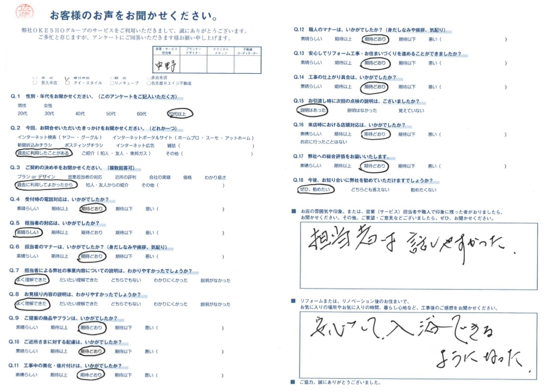 お店の雰囲気や印象。または、営業(サービス)担当者や職人で印象に残った者がおりましたら、お聞かせください。その他、ご要望・ご意見などございましたら、ぜひ、お聞かせください。