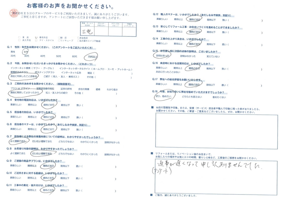 返事(アンケート)が遅くなって申し訳ありませんでした。