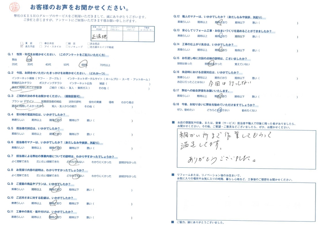 お客様アンケート一覧