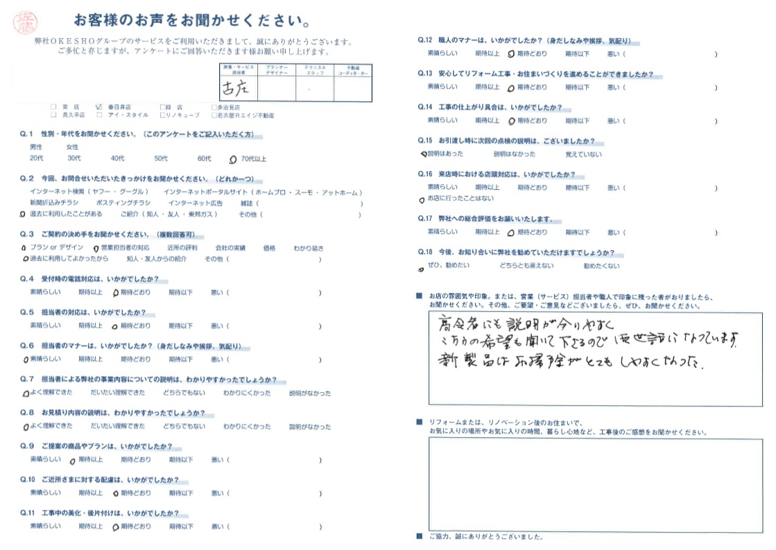 お店の雰囲気や印象。または、営業(サービス)担当者や職人で印象に残った者がおりましたら、お聞かせください。その他、ご要望・ご意見などございましたら、ぜひ、お聞かせください。