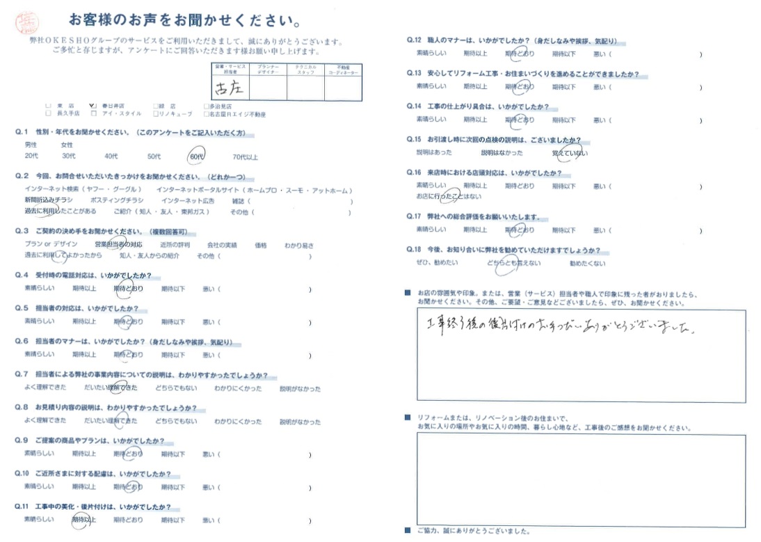 お店の雰囲気や印象。または、営業(サービス)担当者や職人で印象に残った者がおりましたら、お聞かせください。その他、ご要望・ご意見などございましたら、ぜひ、お聞かせください。
