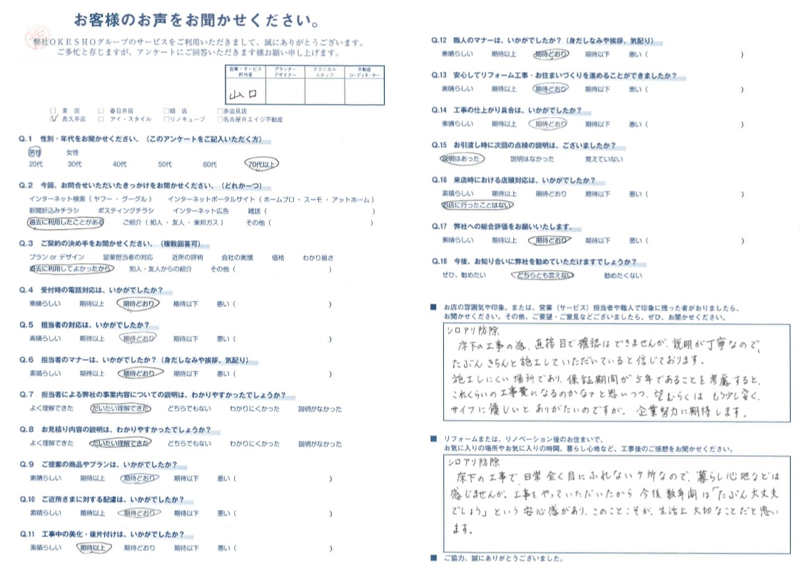 お店の雰囲気や印象。または、営業(サービス)担当者や職人で印象に残った者がおりましたら、お聞かせください。その他、ご要望・ご意見などございましたら、ぜひ、お聞かせください。