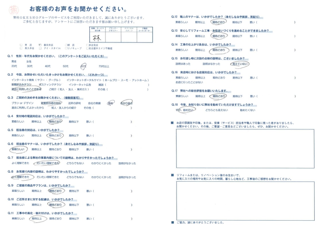 お客様アンケート一覧